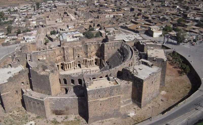 Located in southern Syria, Busra Al Sham is home to one of the world’s best-preserved Roman amphitheatres, alongside early Christian churches and Muslim madrasas—all rendered in shades of black, or rather, a deep ashy grey.