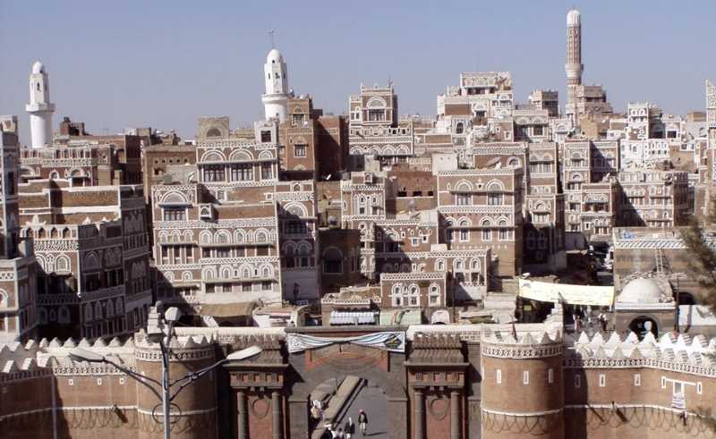 Situated in a mountain valley at an altitude of over 2,000 metres, the Old City of Sana’a is defined by an extraordinary density of rammed-earth and burnt-brick towers rising several storeys above stone-built ground floors. Their façades are strikingly adorned with geometric patterns in fired brick and white gypsum, creating a rhythmic interplay of earth tones and bright detailing.