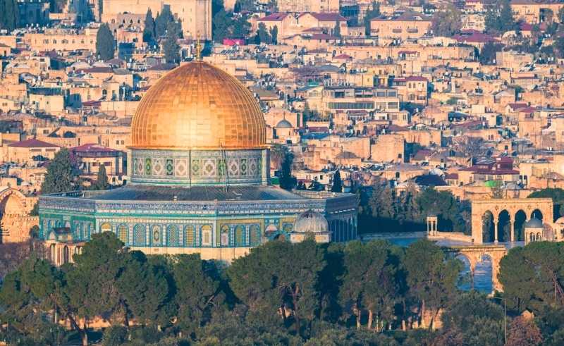 At first glance from above, Palestine’s capital appears almost entirely white—with the only exception being Al Aqsa Mosque with its mosaic royal blue walls and golden dome rising prominently against the sky.