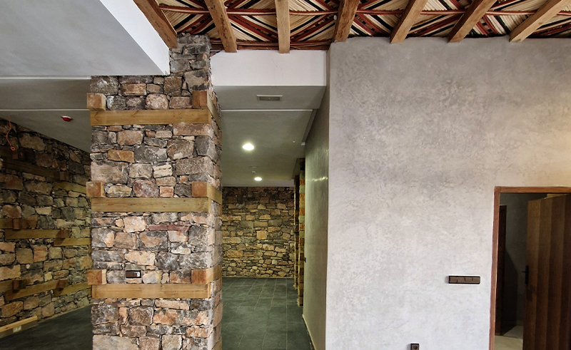 Construction relied on traditional earthquake-resistant techniques drawn from the Atlas Mountains. Stone walls are combined with timber elements that help absorb seismic movement, offering strength without relying entirely on concrete. For Naji, this approach was both symbolic and practical: “As a tribute to the victims of the earthquake, we chose to move away from an all-concrete solution and instead update vernacular construction methods for today,” she explains. “These techniques, rooted in local knowledge and materials, proved both relevant and necessary.”