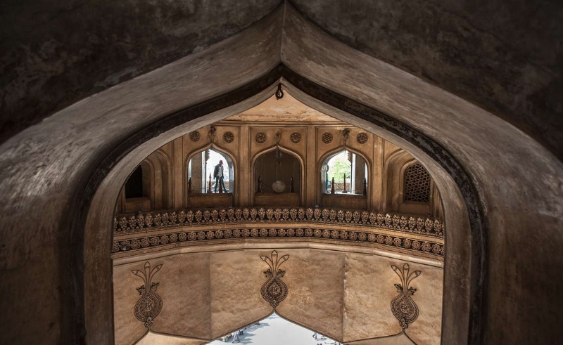 At the centre of Hyderabad, the Char Minar (1591) redefines the madrasa typology into an urban monument. Commissioned by Muhammad Quli Qutb Shah, the structure rises 55 metres at the crossroads of four grand avenues—a fusion of ceremonial gateway and elevated mosque.