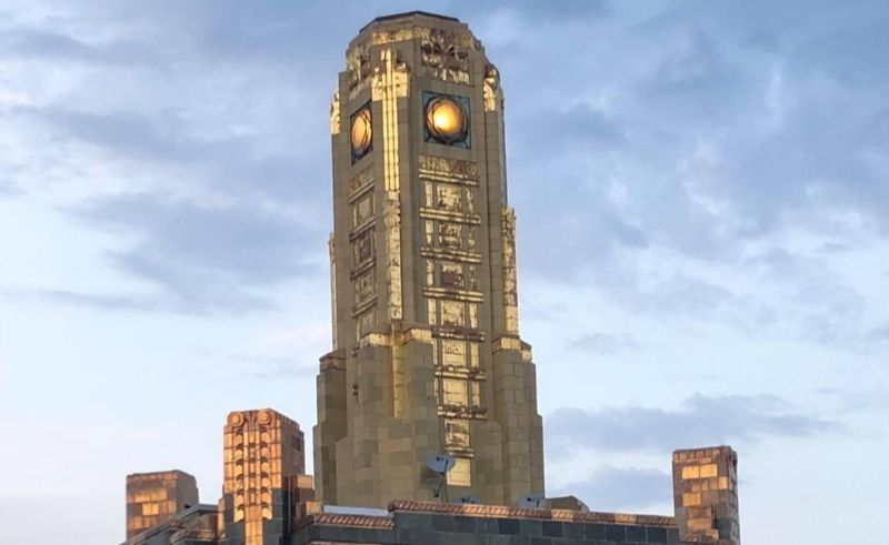 The Eastern Columbia Building designed by Claud Beelman features vibrant turquoise terracotta facade paired with a lapis blue and gold trim, which are strongly suggestive of ancient Egypt’s most used colours. Its Art Deco trademarks including geometric shapes, chevron patterns, unique plant and animal motifs, and its eye-catching gold sun art work stand as unique examples of boundary breaking architecture. Most notably, the dramatic four-sided clock tower represents the elegant and inventive nature of twentieth century design.