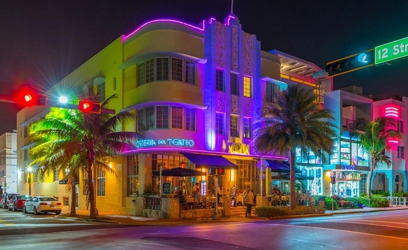 While much smaller, standing at three stories, the Marlin Hotel designed by L. Murray Dixon remains an impactful member of the Art Deco herd. Its unique pastel blue and yellow facade with its iconic “eyebrows” located above each window, makes this building a stand-out on this list. Its casual ambience pleasantly contrasts the traditionally extravagant interpretations of its style, offering a stylised take on Art Deco. While the rooms have undergone contemporary renovation, the vintage terrazzo flooring featuring geometric patterns and pastel tones similar to the exterior secure the building's connection to its roots. Observable above the front entrance to the top of the facade are colourful patterned panels, enhancing the pastel themes and guiding the gaze upward. These ornamental panels and sunlit pastel hues can be read as a modern interpretation of ancient decorative symbolism reimagined through Miami’s coastal, modern energy.