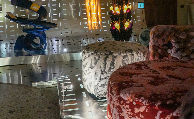 Jwana Hamdan presents an installation set within the private garden of ME Milan Il Duca. In this open-air setting, the brand’s iconic lounge pieces are reinterpreted through the Babilonia textile language, gaining a renewed visual and tactile identity. Each piece defines a distinct environment, expressed through three chromatic worlds that explore the dialogue between texture, tone, and form.