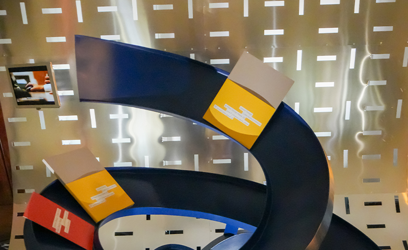 This perception shapes the work, titled Tah - Arabic for “got lost” - a reference to the disorientation he experiences when reading text. The piece translates that state of being into form, reflecting how words can become spaces of confusion, where meaning is constantly slipping and reforming.