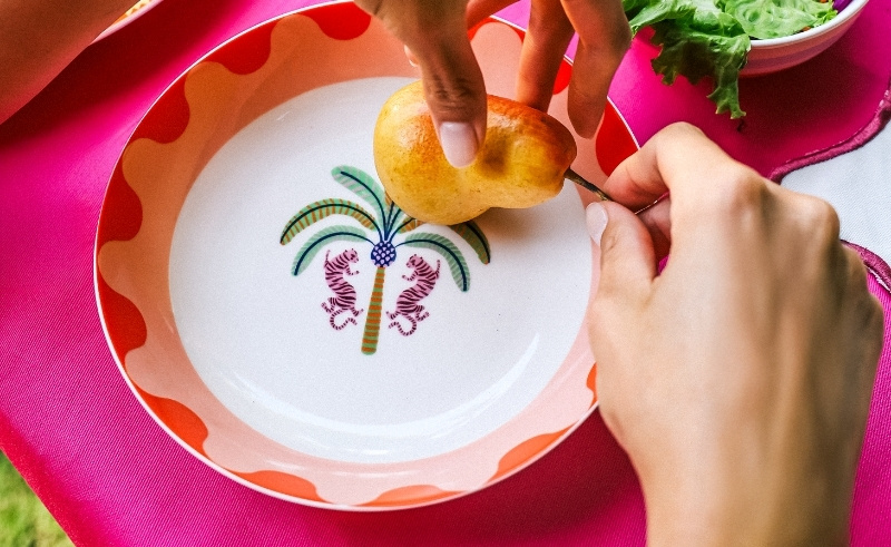 For this summer collection, Kin Suki and Mayka turned to the Brazilian illustration style, translating its bright contrasts and joyful energy into limited-edition plates. “This vibrant illustration style immediately resonated with us. Its bold colours and joyful forms felt like the perfect expression of summer—bright, uplifting, and full of energy,” Shehata explains. To ensure authenticity, they collaborated with a Brazilian artist, grounding the designs in the culture that inspired them. The result is a series of plates that feel hand-painted, alive with texture, and designed to bring cheer and rhythm to everyday dining.