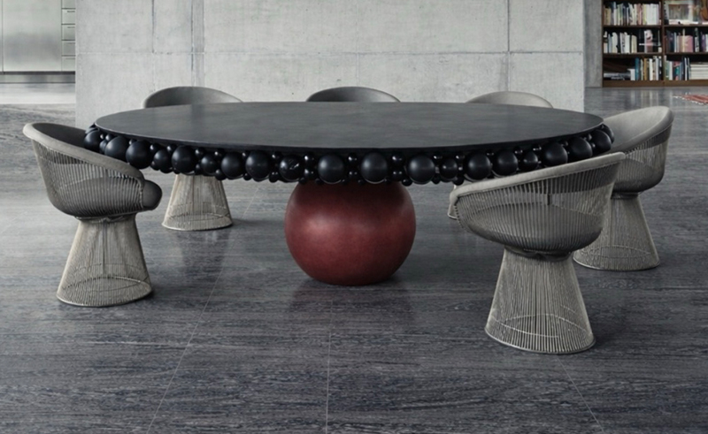 “The idea was to bring Moroccan traditional production into a contemporary house,” Benhamou explains. The table is defined by a series of circular rings wrapping its form, reflecting the motion of the lathe. “Everything about this technique is about rotation; we wanted the table to show that movement,” he adds. “Most design today is very minimalist and restrained, and I wanted to take it further.”