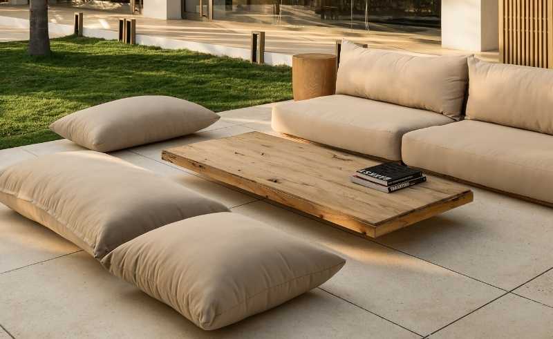 The Clay Pilates experience extends beyond the practice itself. Outside, a communal space furnished with plush chairs and grounded cushions invites stillness and connection. Unlike a typical exercise class, where people rush in and out, this landscape encourages lingering. A concrete ‘Healthy Bar’ provides a place to unwind, converse, and remain long after class has ended.