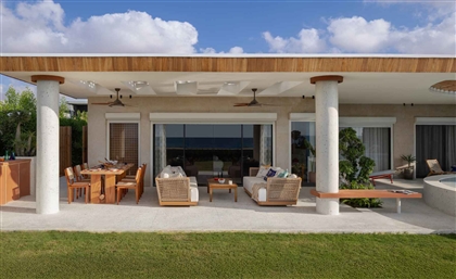 “There was still room for contrast, the colour is neutral enough to allow rocky walls and rugged pebbles to be set against smooth plaster and fabrics,” Founder Mahmoud Sherif tells #SceneHome. “A tiny lobby with dramatic lighting leads to the kitchen and living areas that have a breath-taking view.”