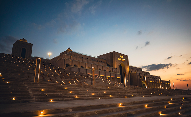 Beyond the prayer spaces, the mosque unfolds as a cultural landscape. Libraries, learning rooms, retail spaces and visitor facilities are woven into the edges of the complex, blurring the boundary between religious institution and public realm. At its centre, Dar Al-Quran forms a contemplative sequence of marble-lined rooms, where engraved verses transform recitation into a spatial experience. A museum dedicated to Egypt’s most renowned Quran reciters extends this narrative, situating the mosque within a living tradition of voice, memory and cultural heritage.